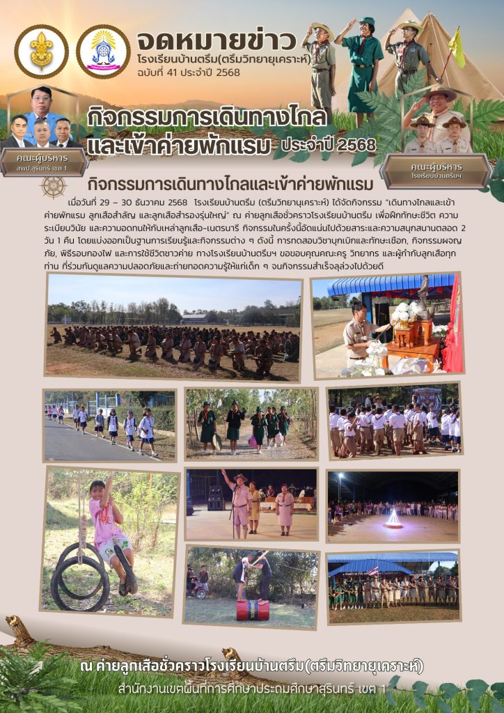 วันที่ 29 -30 ธันวาคม 2568 โรงเรียนบ้านตรึม(ตรึมวิทยานุเคราะห์) ได้จัดกิจกรรมเดินทางไกลและเข้าค่ายพักแรม ณ ค่ายลูกเสือชั่วคราวโรงเรียนบ้านตรึมฯ